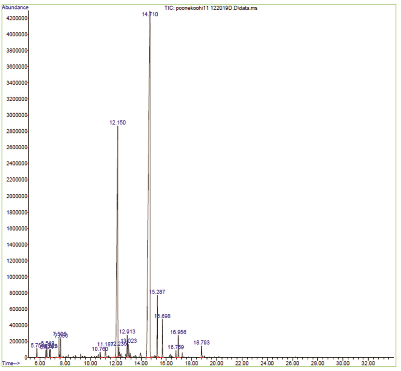 14 | Piperitenone oxide | 14.710 | 64.68 |